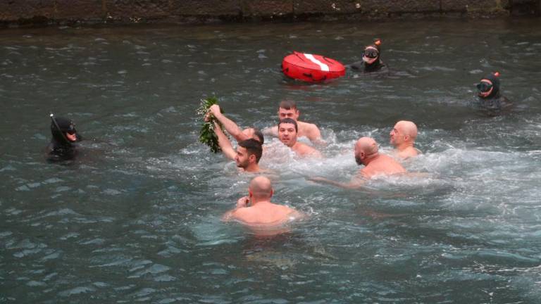Burja, ki je dopoldne na kanalu pihala zelo močno, in dež, v katerem so poplesovale snežinke, jih niso ustavili: ob vzkliku »Bog se javi« (Bog se je razodel) so zaplavali do sredin kanala in venec ponovno prinesli na suho. Med neustrašnimi je bila – edina ženska – tudi Vesna Topić, ki v tržaškem morju plava prav vsak dan v letu ...