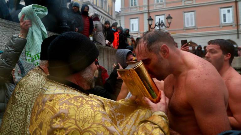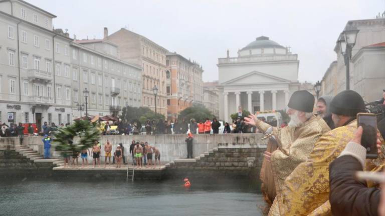 Srbsko-pravoslavna skupnost danes tudi v Trstu časti epifanijo. Po jutranjem verskem obredu v cerkvi sv. Spiridona je bil predviden blagoslov vode, ki zaradi zelo slabih vremenskih razmer ni potekal na pomolu Audace, temveč v kanalu pred cerkvijo. Ko je nekaj pred 11. uro duhovnik Raško Radović vrgel v morje lovorjev venec in križ, se je za njim pognalo osem ljudi.