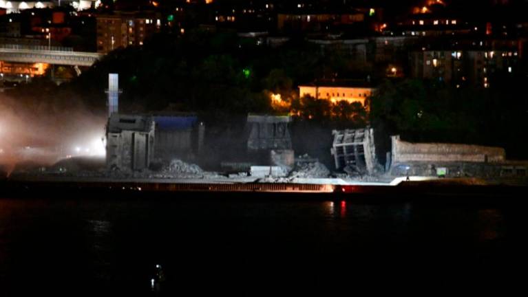 300 kilogramov dinamita in manj kot 30 sekund je bilo potrebnih za razstrelitev še zadnjih objektov nekdanje škedenjske železarne. Točno ob 20. uri so z razstrelivom porušili 4 stavbe in več deset metrov visoki dimnik. S tem dejanjem se tudi uradno začenja razvoj območja, na katerem bo zrasel med drugim tudi osmi pomol, s katerim bo tržaško pristanišče lahko povečalo svoje kapacitete in krepilo svojo konkurenčnost. Ob tej priložnosti je investitor, gradbeno podjetje Icop, organiziral tudi ognjemet. Še pred tem so povabljene goste nagovorili predsednik deželne vlade FJK Massimiliano Fedriga, minister Stefano Patuanelli, predsednik pristaniške uprave Zeno D’Agostino in župan Roberto Dipiazza. Besedo jim je predal Vittorio Petrucco, lastnik gradbenega podjetja Icop, ki je uvodoma dejal, da so z ognjemetom želeli počastiti nov začetek, nov industrijski cikel, ki bo prinesel tudi nova delovna mesta, ne pa konca škedenjske železarne.