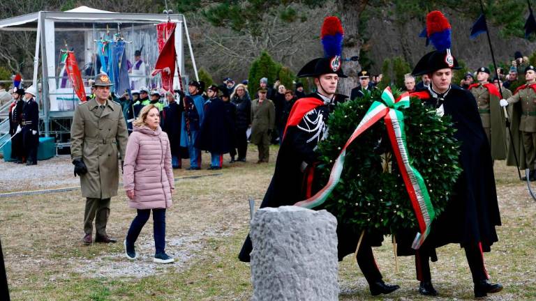 »Vi ste naša družina, vaši spomini so naši spomini, vaše solze so naše solze.« Tako je italijanska premierka Giorgia Meloni nagovorila navzoče danes dopoldne pri bazovskem šohtu na svečanosti ob dnevu spomina na fojbe in eksodus. Premierka je poudarila, kako je zgodovina pobojev ob koncu in po drugi svetovni vojni ter množičnega odhoda Italijanov z ozemelj, ki so danes v Sloveniji in na Hrvaškem, ne le zgodovina obmejnih krajev, ampak zgodovina celotne Italije. Sama si bo prizadevala, da se spomin prenese na nove rodove, v imenu državnih inštitucij pa je prosila odpuščanje za dolgoleten molk o tem poglavju zgodovine. Kdor je po vojni zapustil domače kraje, je to storil, da bi ohranil svojo identiteto, je dejala Meloni in se zavzela za obnovo solidarnosti v znamenju zgodovinske resnice, ki jo je treba deliti tudi s Slovenijo in Hrvaško, pri čemer je omenila tudi bližnjo Evropsko prestolnico kulture v Gorici in Novi Gorici.