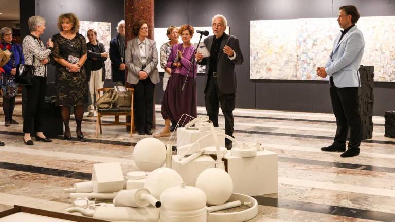 Vsaka partitura je rigorozna in se rodi zato, da bi povezala različne elemente, je v soboto zvečer v tržaškem Kulturnem domu dejal umetnik Franc Vecchiet. Njegova partitura je na istoimenski razstavi povezala tri elemente: kolaže v velikih in malih formatih, skulpture in večjo instalacijo, ki jo ob rabljenih predmetih sestavlja tudi velik bel list, saj je treba prihodnost še napisati.