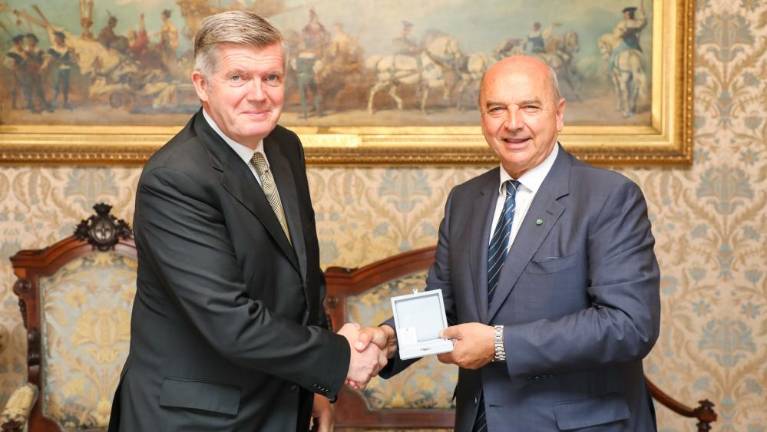 Veleposlanik Republike Slovenije v Italiji Tomaž Kunstelj, ki zapušča Rim, je danes iz rok tržaškega župana Roberta Dipiazze prejel najvišje občinsko odlikovanje, srednjeveški pečat. Kunstelj, ki se je v Trstu mudil zaradi slovesnosti ob dnevu državnosti v Narodnem domu, je z županom spregovoril o najbolj pomenljivih trenutkih v preteklih letih, izpostavila sta skupen poklon predsednika Republike Slovenije Boruta Pahorja in predsednika Republike Italije Sergia Mattarelle pred bazovskim šohtom in spomeniku bazoviškim junakom julija 2020. Veleposlanik se je podpisal v zlato knjigo občine z naslednjim posvetilom: »Počaščen sem, da lahko v Italiji služim svoji domovini Sloveniji. Trst je od nekdaj mesto, ki se odpira na morje in v svet. Zaključujem veleposlaniški mandat, ostajam pa prepričan zagovornik sodelovanja in prijateljstva med italijanskim in slovenskim narodom«.