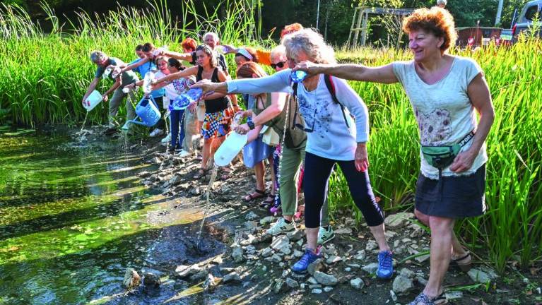 Kontovelska mlaka je v zadnjih tednih bolj podobna blatni luži. Zaradi redkih padavin v kraški kotlini primanjkuje vode, kar je za vodne živali že postalo nevarno. Tržaška občina je pred časom rajonskim svetnikom zahodnega Krasa napovedala, da bo v mlako dodala vodo, a tega ni storila. Včeraj so zato domačini problem rešili kar sami. Priredili so čisto poseben protest in v mlako dolili vodo s plastenkami.