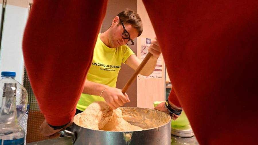 Ravno prava količina vode in tehnika mesenja sta ključ do fanclja s hrustljavo skorjo, ki bo rahel kot oblaček. Testo mora biti namreč ravno prav lepljivo, nikakor pa ne tekoče. V osmici GD Prosek ga gnetejo s »polentarjem«, veliko leseno kuhalnico. Z njo maso vlečejo in mlatijo, dokler se testo ne začne vleči in se v njem ne pojavijo mehurčki.