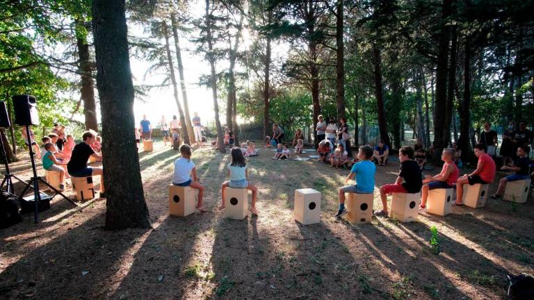 Preden sedeš za instrument, se moraš primerno ogreti. Na četrtkovi glasbeni delavnici v Parku miru na Kontovelu so otroci odkrili, da so pri tem preproste vajice za roke zelo učinkovite. Obračanju, prepletanju, masiranju zapestij so sledile ritmične vaje s ploskanjem in nekaj krajših za glasbeni spomin, nakar je vodja delavnice Jaka Strajnar otroke povabil k neobičajnim tolkalom v obliki škatle. Vsak se je tako preizkusil v osnovni tehniki igranja na cajon, neobičajno in zabavno tolkalo iz Peruja. Z delavnico se je začel niz dogodkov za otroke Gledališče v parku, ki ga omogoča Slovensko dramsko društvo Jaka Štoka s pomočjo Urada Vlade RS za Slovence v zamejstvu in po svetu.