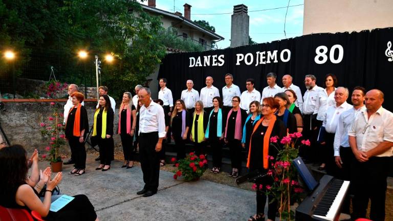 V večernem mraku je v soboto na dvorišču osnovne šole Lojzeta Kokoravca Gorazda v Saležu zaživel slovesen in obenem prisrčen večer ob 80-letnici Mešanega pevskega zbora Rdeča zvezda, ki deluje v okviru istoimenskega društva. Večer so sooblikovali gostje iz Bazovice, Križa, Potrne, Hrpelj in Atrija v Abrucih.