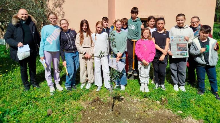 Katinarski župnijski vrt bogatejši za oljko Učnci prvega razreda PSŠ sv. Cirila in Metoda so pred velikonočimi prazniki zasadili mlado oljko belico, ki jo je blagoslovil župnik Karol Boltryk (Kristina Kovačič)